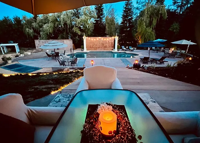 Mit Blick auf die Terrasse empfängt das Apartment Ferienwohnung The Oasis seine Gäste mit einem Tauchbecken, einem Jacuzzi und einem Whirlpool für einen angenehmen Aufenthalt. Dieses Apartment liegt 19 Minuten vom Flughafen Redding Municipal entfernt.